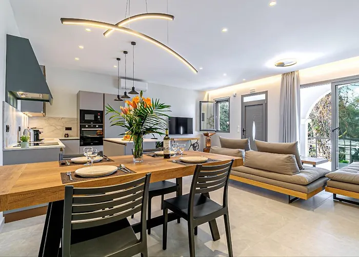 The Mpoukari Beach is 2.9 km from the 3-bedroom villa, while the 13th-century Byzantine Castle of Gardiki is 7 km away.